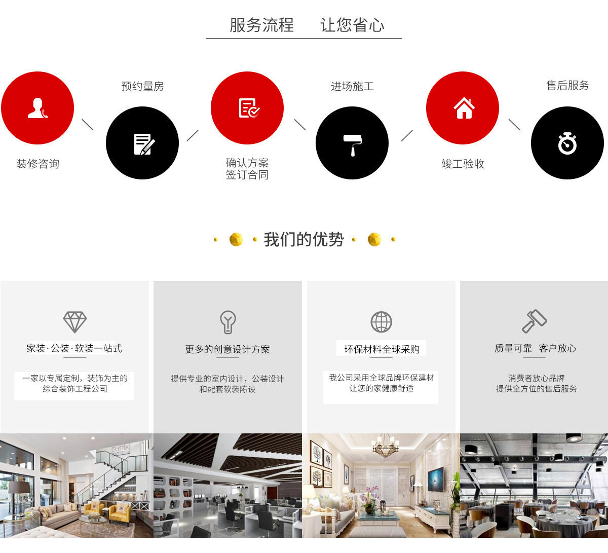 公司經(jīng)營范圍:建筑工程裝飾裝修、園林綠化工程服務(wù)、外墻保溫工程施工、建筑工程安裝服務(wù)、建筑裝飾材料銷售。公司擁有300平方米辦公空間,硬件配套設(shè)施齊全,具有現(xiàn)代化的工作環(huán)境及條件。公司體制完整、部門齊全,對工程的設(shè)計、施工及后期服務(wù)有一套成熟有效的管理制度和嚴(yán)格科學(xué)的質(zhì)量保障體系。多年來,所承接并完成的各類大、中、小型工程均受到了業(yè)主的一致好評,在裝飾市場贏得良好的信譽(yù),在業(yè)界享有較高的知名度。